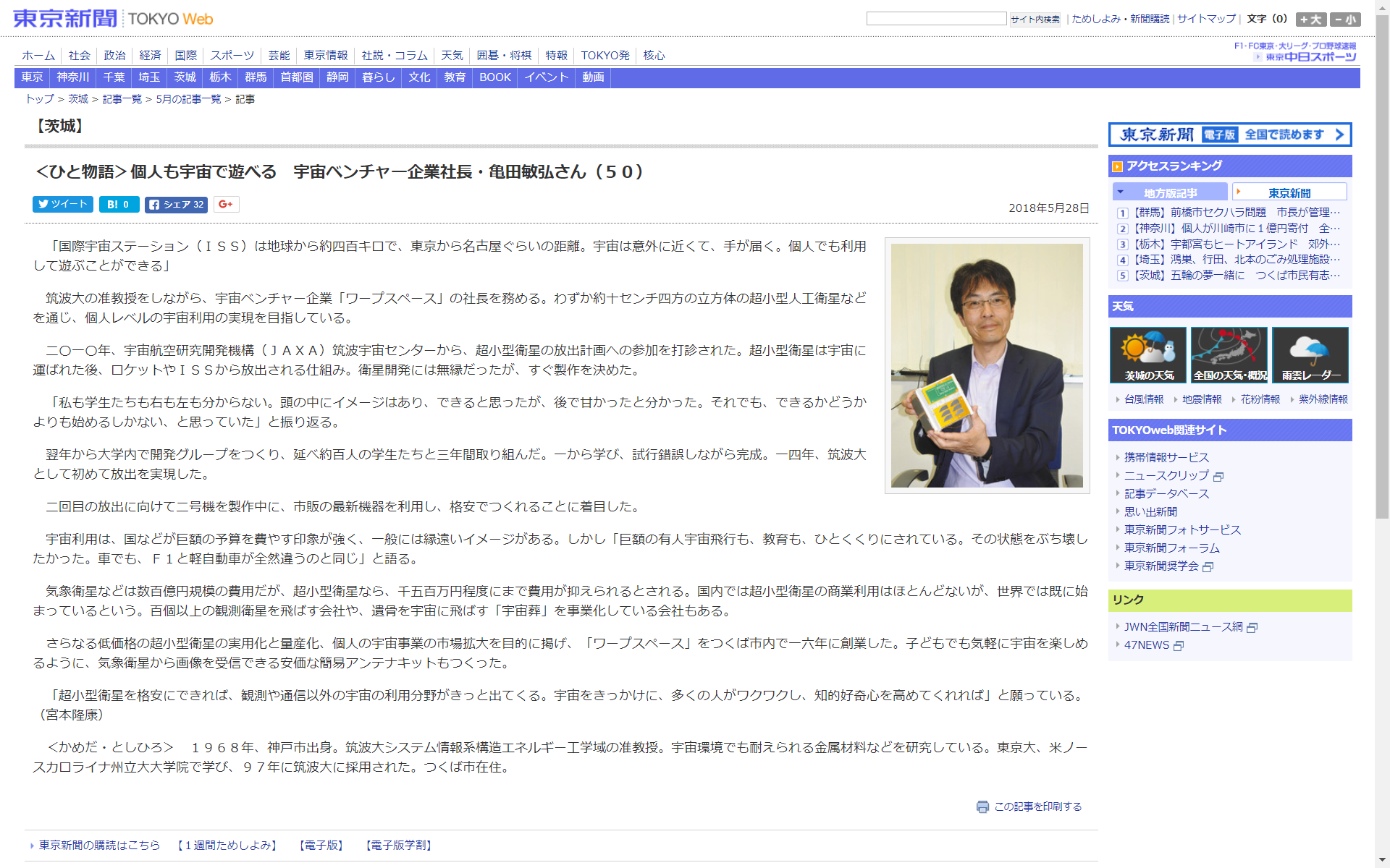 | お知らせ | 亀田敏弘准教授の超小型衛星の開発に関する紹介が東京新聞Tokyo Webに掲載されました。 |