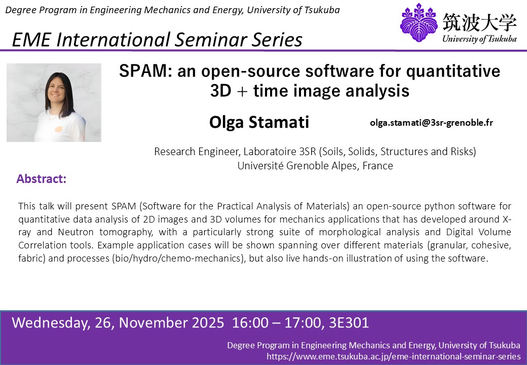 2025年10月20日 Oct. 20. 2025 [2025/11/26 (Nov. 26)] EME International Seminar Series [2025/11/26 (Nov. 26)] EME International Seminar Series Presenter: Dr. Olga Stamati (Université Grenoble Alpes, France) For EME students Presenter: Dr. Olga Stamati (Université Grenoble Alpes, France) For EME students