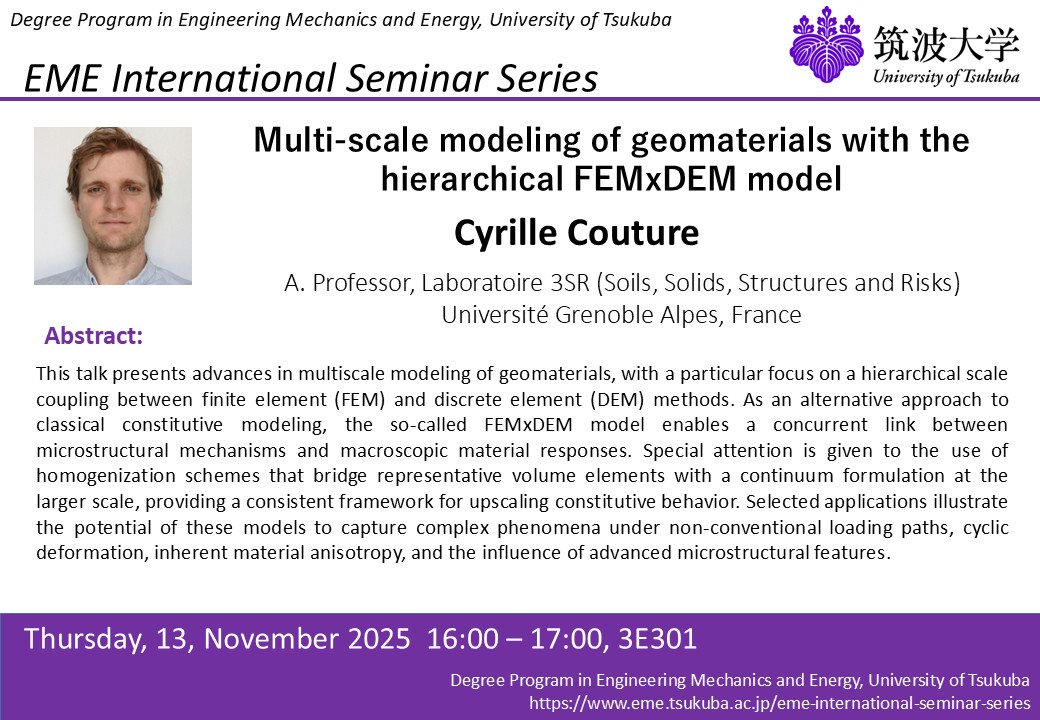 2025年10月20日 Oct. 20. 2025 [2025/11/13 (Nov. 13)] EME International Seminar Series [2025/11/13 (Nov. 13)] EME International Seminar Series Presenter: A. Prof. Cyrille Couture (Université Grenoble Alpes, France) For EME students Presenter: A. Prof. Cyrille Couture (Université Grenoble Alpes, France) For EME students